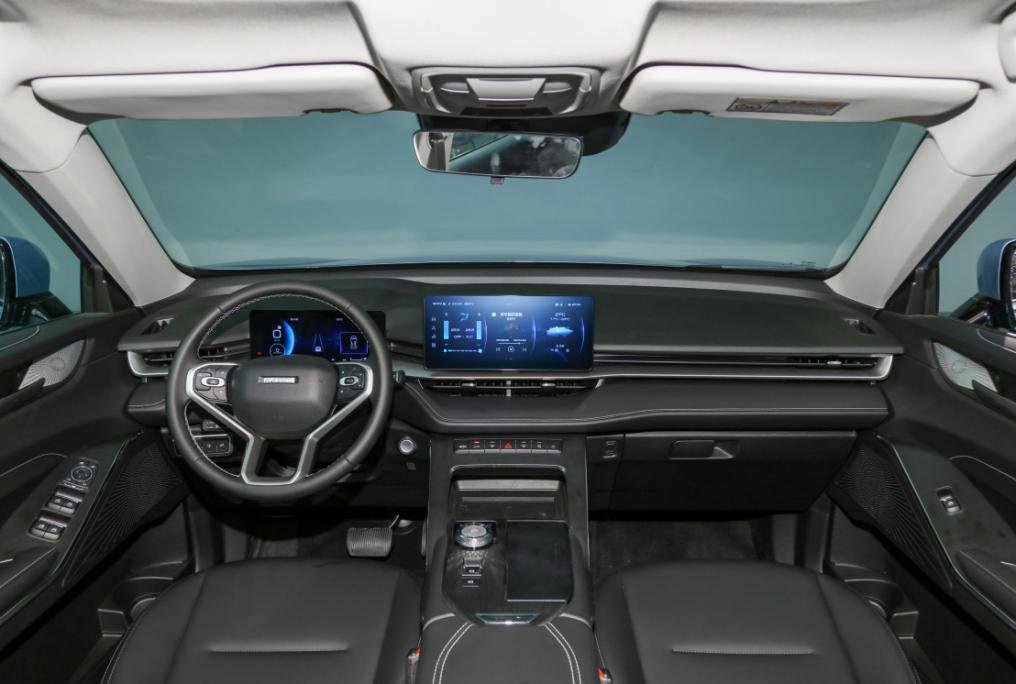 内饰部分,第三代哈弗H6 PHEV沿袭了燃油版简洁明快的座舱风格,中控台采用了平直的分层式设计,前方视线更加通透。10.25英寸全液晶仪表和12.3英寸触屏“悬浮”在中控台上,并可选装HUD抬头显示系统,为车内营造出了不错的科技氛围。