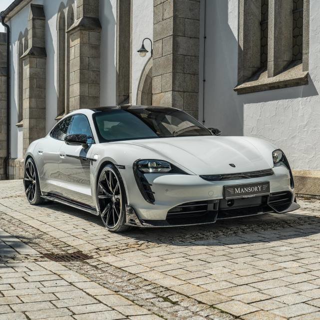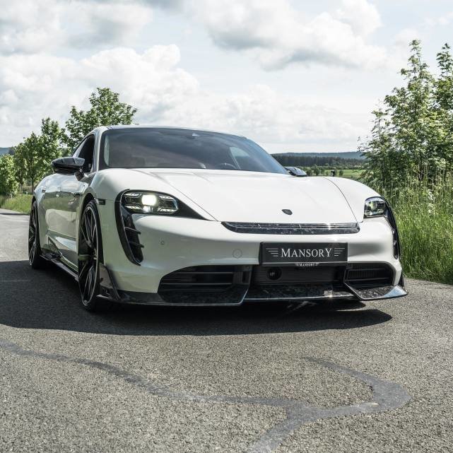 Taycan,是保时捷首款纯电动跑车,意为英姿飒爽的年轻骏马。“在欧洲豪车定制大师”MANSORY迈莎锐的“魔改”下,新车车头前唇、前保、日行灯罩等部位,均采用了纹理精密的航空级碳纤维打造,更显精致典雅。特别是炯炯有神的车大灯“眼睛”,犀利且凶猛。