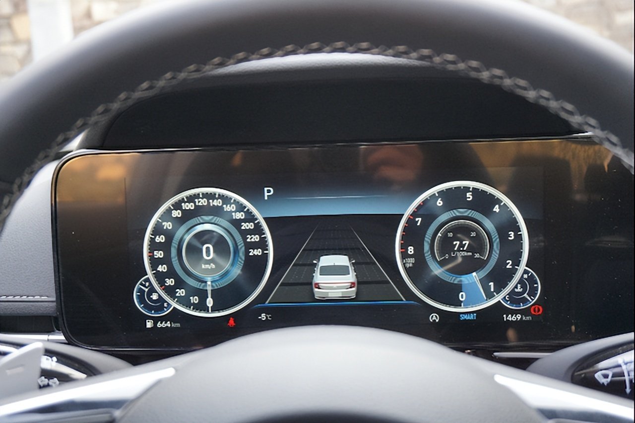 除了存在于座舱的智能表现之外,辅助驾驶上的智能或许更能为出行减负。全新一代名图具备有包括SCC智能巡航、LKA车道保持功能在内的23项ADAS功能,具备L2+级别自动驾驶能力。在我们试驾过程中,这套系统的识别精度颇高,即便是在车道线并非十分明显的道路上同样能保持方向。另外在整个自动驾驶过程中油门踏板和方向盘转角曲线标定特性更偏线性,在保证安全的前提之下,极大地提高了舒适质感。