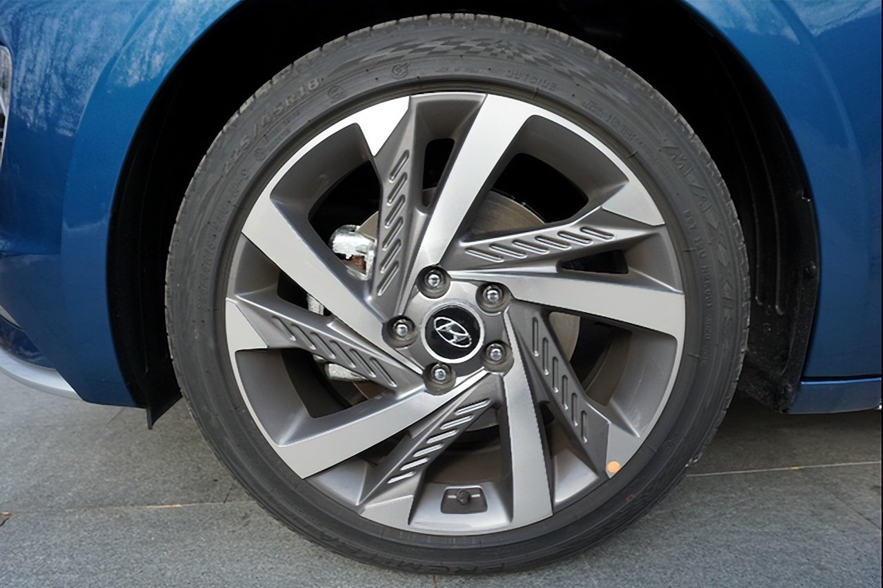 侧面上除了修长流畅的车身曲线之外,最为突出的是前后两道腰线,在其勾勒之下整个车身尽显流畅动感。另外,在门板曲面造型上全新名图采用了凹凸有致的设计,在光线照射下营造出流动的光影效果,搭配18英寸的双色运动轮圈,不论是从哪个角度都有视觉上的新体验。