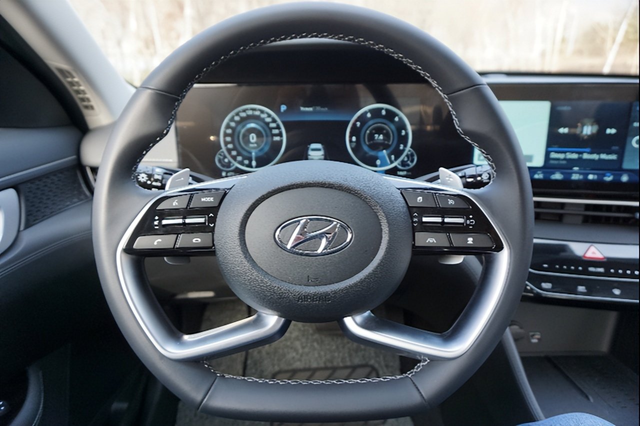 在动力方面全新名图共推出了104kW1.8L自吸发动机+CVT和125kW1.5T涡轮增压+7DCT两套动力,显然前者主打舒适家用,后者则融入了部分运动元素,本次我们拿到的为搭载1.5T动力的顶配版本。那么在正式开始试驾之前,笔者想重点提及一下全新名图的按键式电子挡杆。可能刚开始时还存在有一点点的不适应,但熟悉之后,在使用体验上绝对比常规的换挡杆更胜一筹。