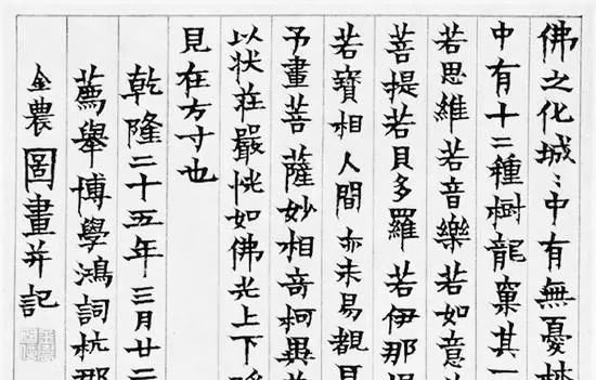 罗聘行书《金农题画诗册》是考证金农与罗聘、汪士慎之间师徒、师友关系的重要依据,其间有金农的习古、摹古、考评,有自出新意的艺术观,有对弟子准确的评价。其内容翔实,不仅反映出金农的人生哲学,也从侧面领略了金农在艺术领域的才能,从中为我们还原了一个诗情画意的金农,一个才华横溢的金农。