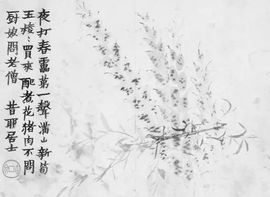 “耻春翁,画野梅,无数花须颠倒开,舍南舍北,处处石黏苔。辄难写,天寒欲雪,水际小楼台。但见冻禽上下,不见有人来。”