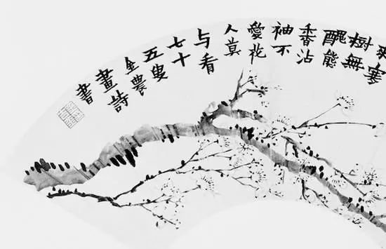 金农以梅花为题材的作品很多,画毕每题诗于上,常作“画诗书”等语,反映出他寄情于梅、冰清玉洁的高尚人格。故宫博物院藏金农《隶书画梅诗轴》《梅花扇》《墨梅图轴》三件作品相映成趣,同一首诗出现在不同的书法和绘画作品上,在罗聘行书《金农题画诗册》“冬心先生画梅题记”中亦有收录,体现了金农以梅会友、因梅相知的情怀。