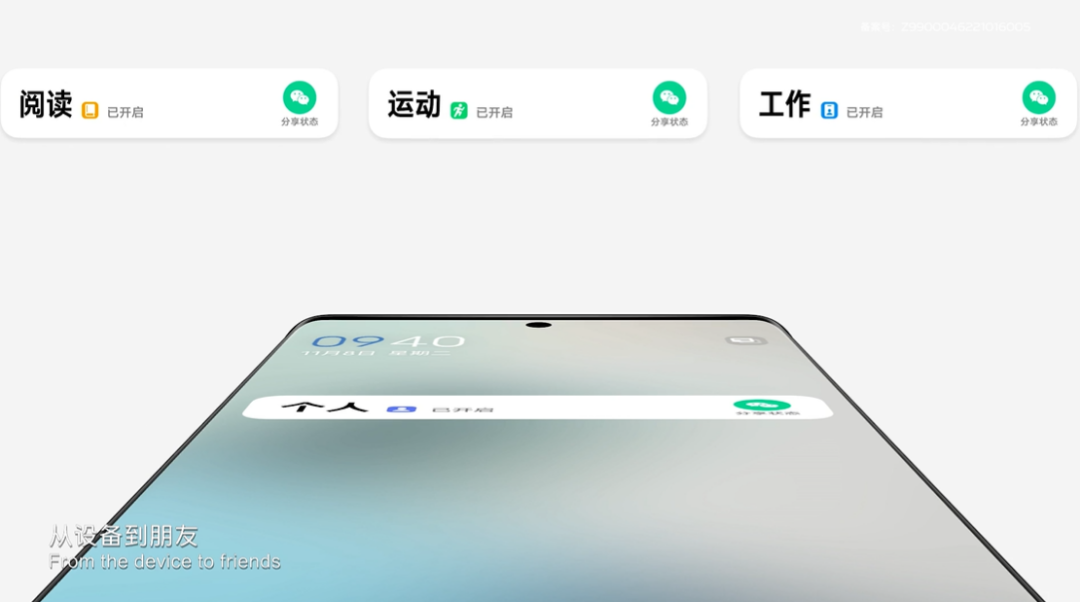最后,零压感专注模式还打通了微信状态分享的功能,从设备到朋友都配合用户,尽可能地让用户平衡好工作和生活,专注于当下。