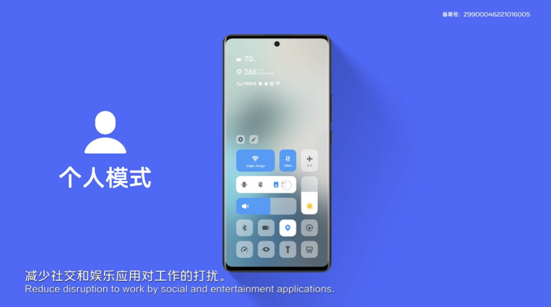 工作中开启工作模式,手机仅提醒工作相关的应用通知,减少社交和娱乐应用对工作的打扰;下班后,开启个人模式,仅允许好友来电,享受游戏开黑时光。
