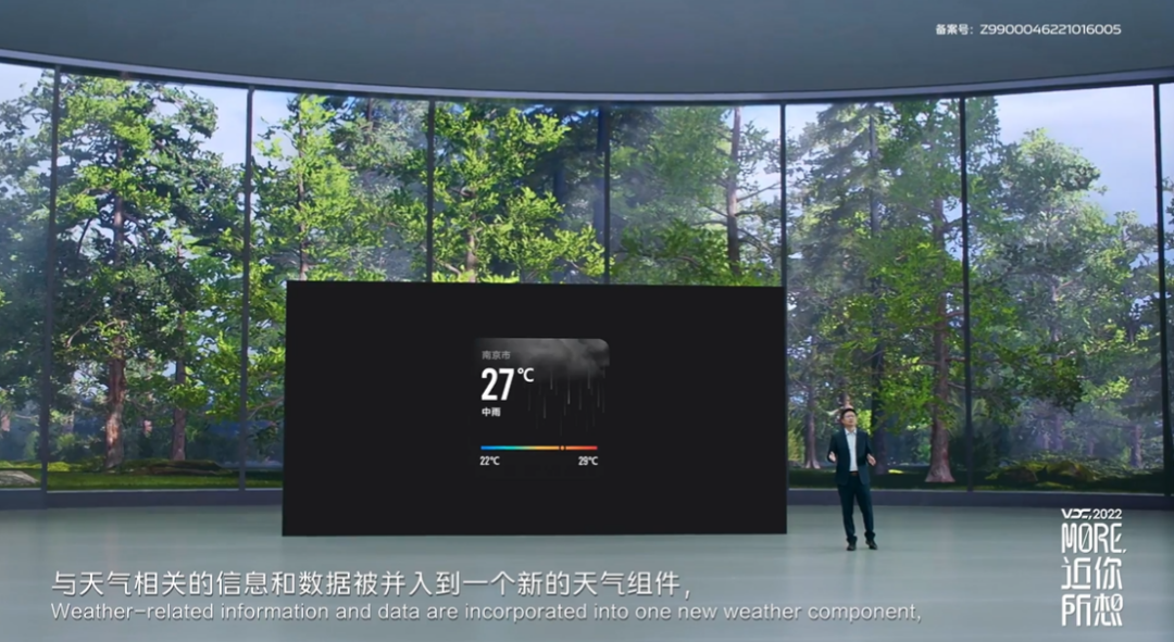 OriginOS 3还将新增更小尺寸的天气组件,与天气相关的信息和数据,都被并列到新的天气组件。天气组件的背景会跟随当时的天气情况进行相应的变化,例如雨天背景会变成阴雨绵绵。3D动态效果,就像直接透过窗户,感受天气一样真实。