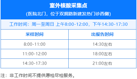 注意:院外核酸检测点采样时间为早上7:30到晚上19:00点。