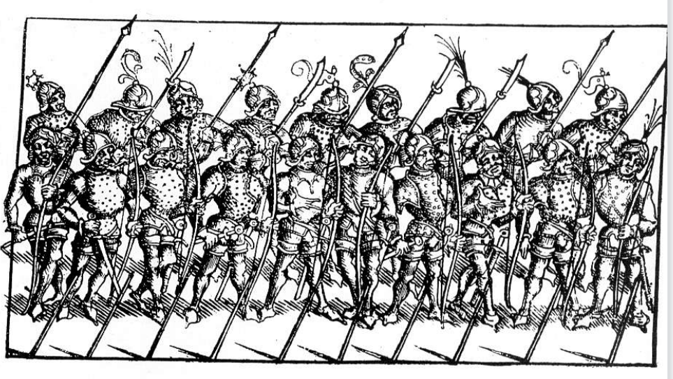 ▲图注:勃艮第军队的弓箭手和近战步兵。勃艮第的弓箭手主要来自弗兰德斯和英格兰。