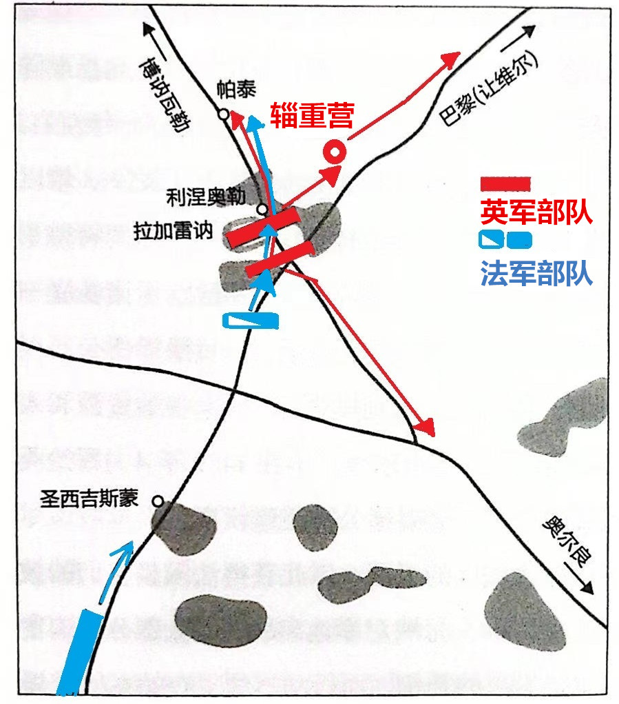 1429年6月18日,在帕泰小镇附近,大约5000名行军途中的英军得知了法军正在快速逼近的消息。经过一番讨论后,英军决定在此迎战法军。根据计划,骑马长弓手前往南面法军必经的树篱之间先牵制敌军。主阵地则在更北面的小山丘上,待部署完毕后准备接应前线的骑马长弓手。