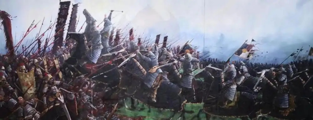 ▲帕泰之战中法国先锋重骑兵的冲锋打了英国长弓兵一个措手不及
