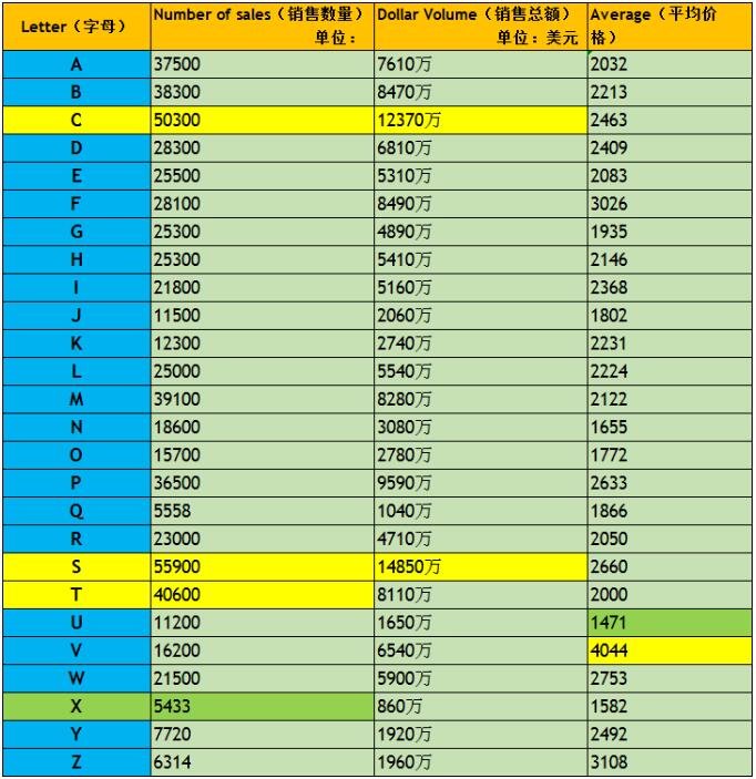 · 很多国内投资人喜欢z、q、t、w等字母。因为这类字母对应的汉字都很适合互联网企业命名。可在国外这几个字母却不怎么受待见,早前我们也做过国外26字母对应域名交易的统计,这些字母的交易也不多,相反国内投资人不喜欢的那几个字母交易,都还行。