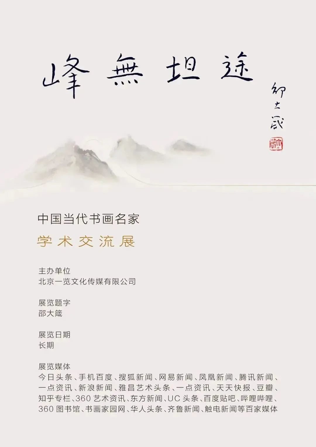 峰高无坦途,风景却无限。本次画展将以线上艺术展的方式呈现中国画作品、油画作品、书法作品等多种艺术形式。参与展览刊登发布的有今日头条、手机百度、搜狐新闻、凤凰新闻、雅昌艺术网、艺术头条、新浪艺术、腾讯艺术等近百家主流艺术媒体及门户网站。永久在线展示。