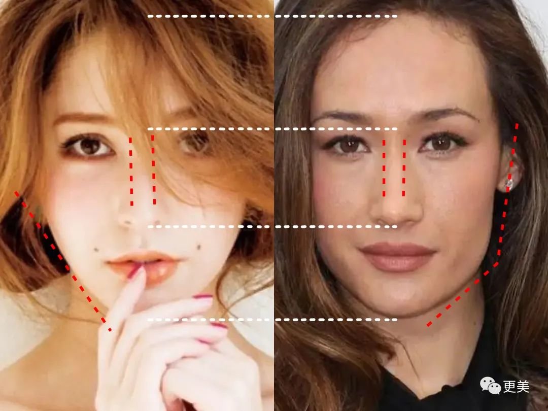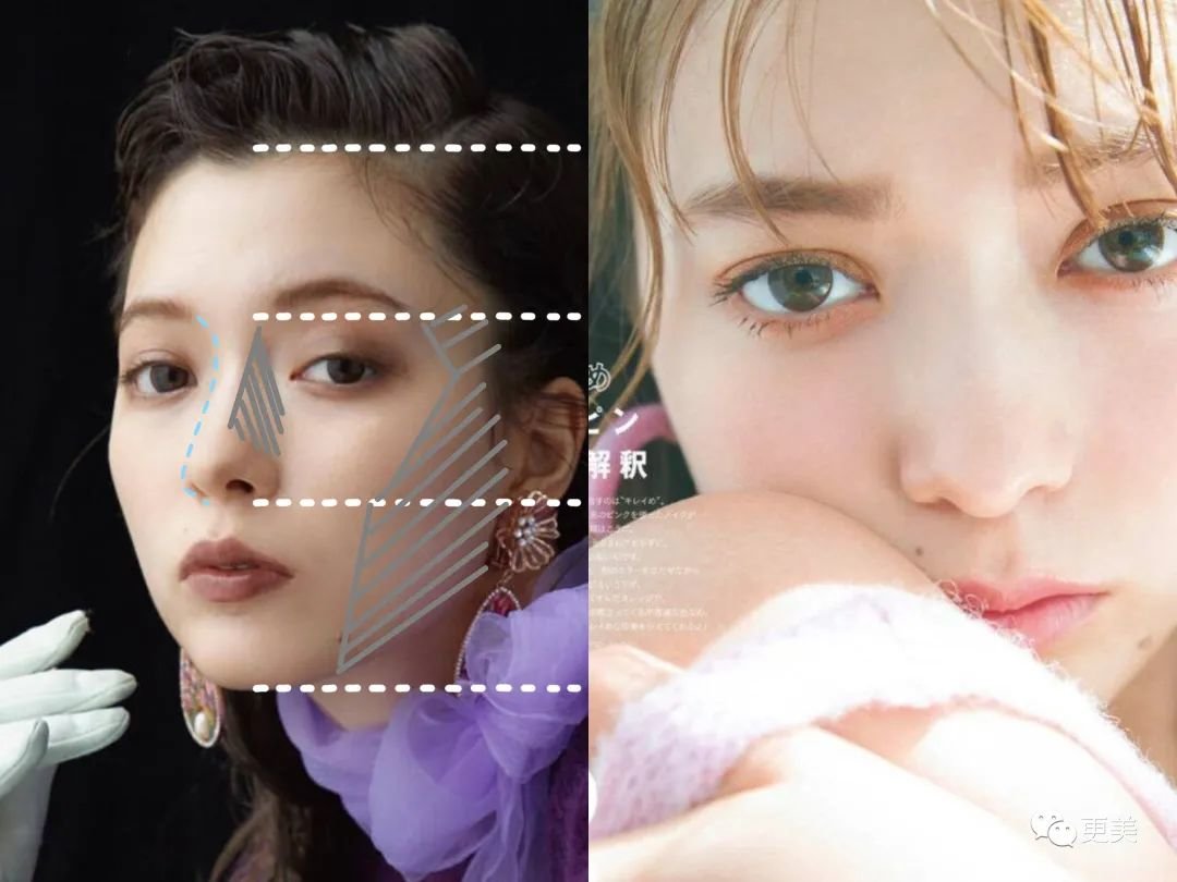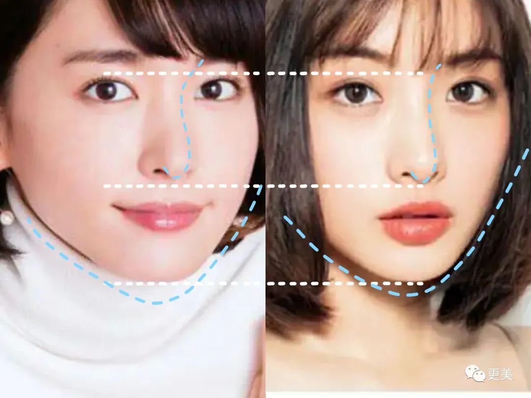 与泽口靖子相比,她们三庭的比例相似,轮廓同样流畅顺滑。