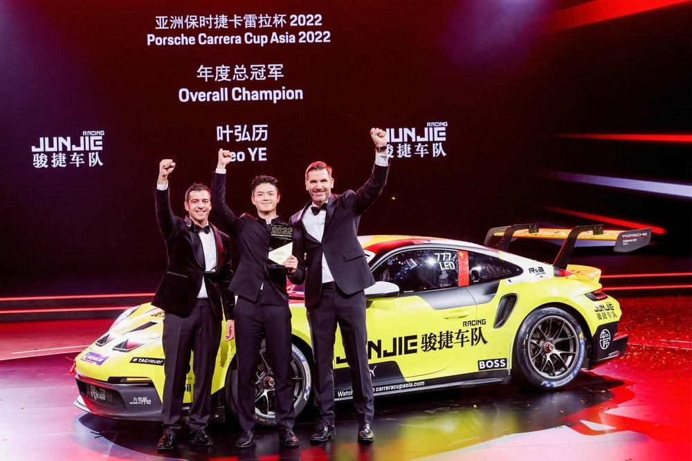 在经历八个回合激烈比拼后,亚洲保时捷卡雷拉杯各积分榜尘埃落定。骏捷车队车手叶弘历加冕年度总冠军,R&B Racing车手吕威和Triple Ace Racing车手Henry Kwong分获绅士组和业余组年度冠军。骏捷车队在其首个亚洲保时捷卡雷拉杯赛季摘得保时捷经销商车队总冠军。与此同时,中国保时捷运动杯中包含保时捷圈速挑战赛和中国保时捷冲刺挑战赛的各年度及特别奖项也在当晚颁出。中国保时捷运动杯的规模在2022赛季进一步扩充,有超过500台保时捷公路车和赛车参加了整个赛季的赛事活动。
