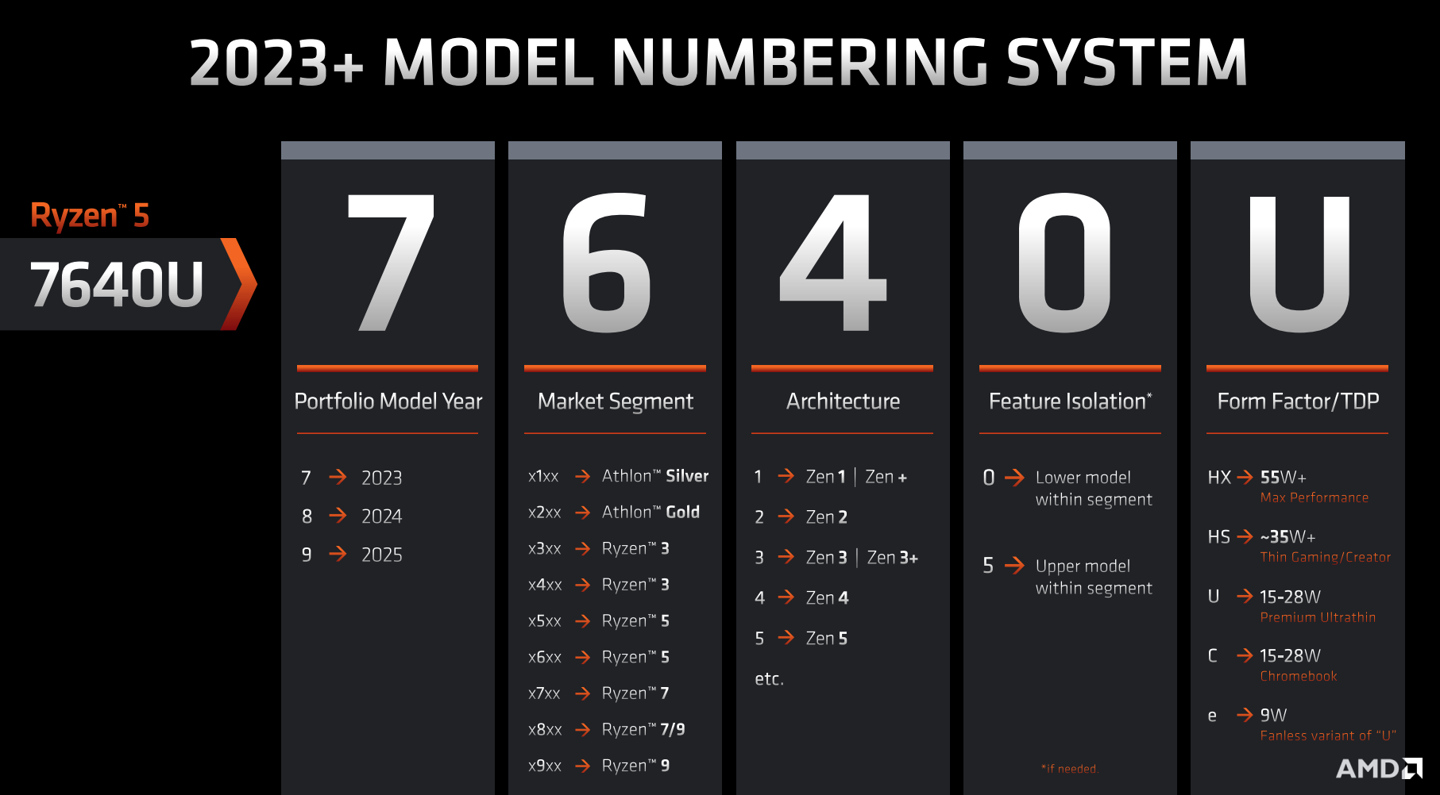 7040 系列正代型号:Zen4 架构,用于新一代高端轻薄本,包括 R3 到 R9 型号