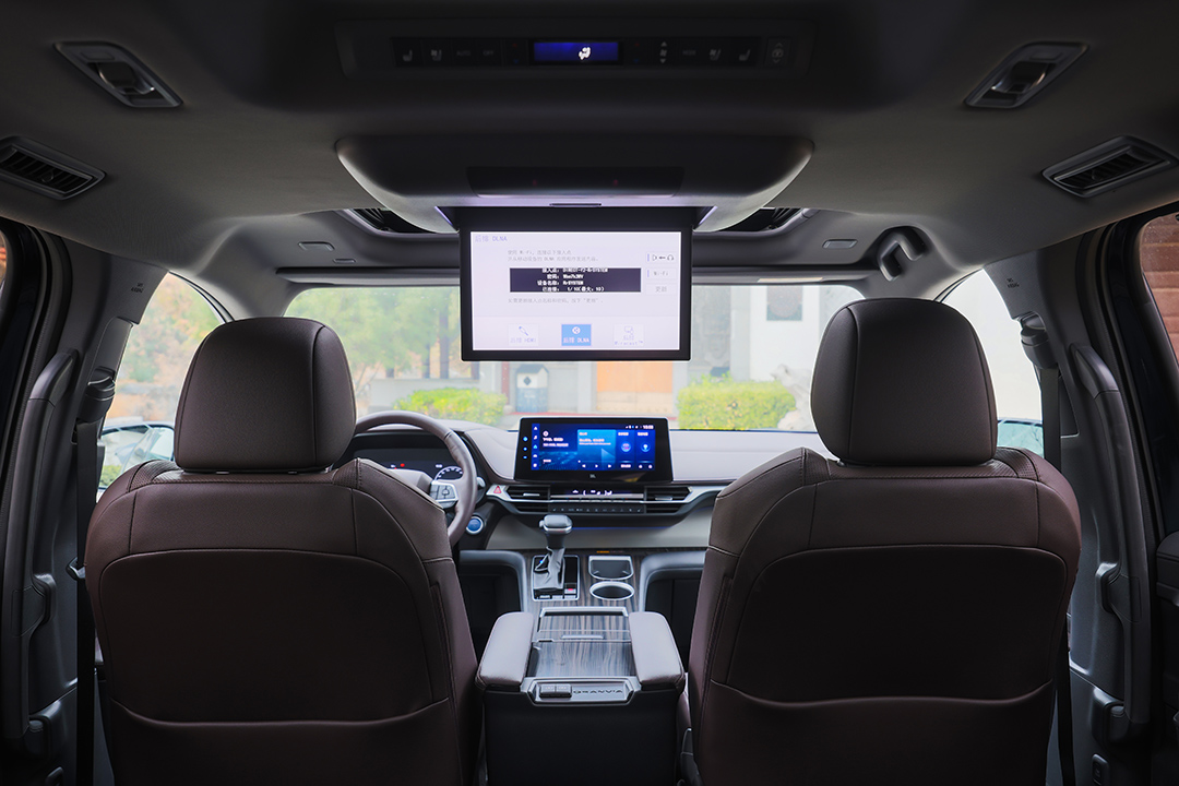 此外,车内还有二排悬吊式屏幕,为第二排乘客在长途出行中增添了更多乐趣,尤其是家里的小朋友,出游时一部动画片就可以让他们乖乖坐好。