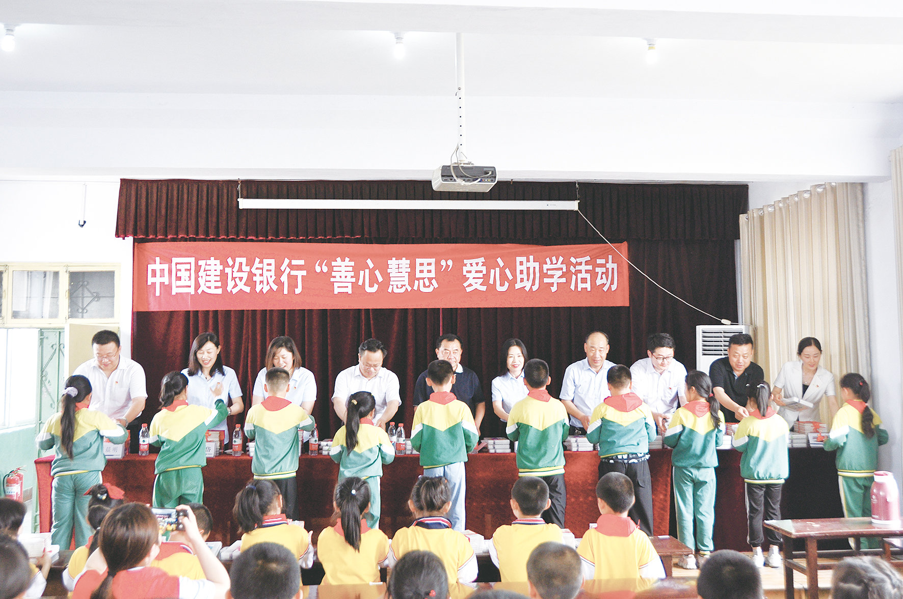 建行泰安分行走进某乡村小学举办“善心慧思”爱心助学活动。