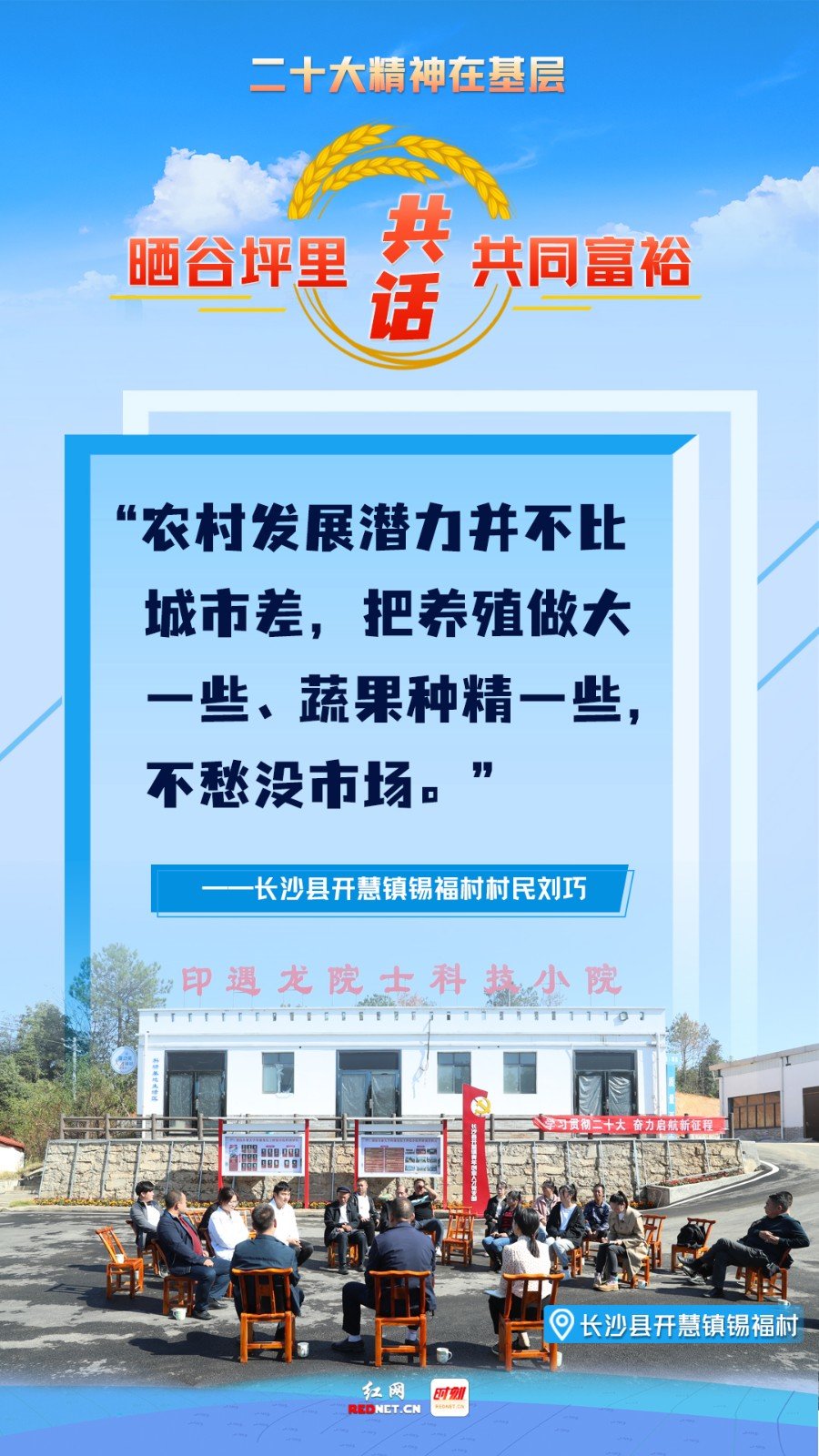 党的二十大胜利闭幕后,全国各地迅速掀起学习党的二十大精神的热潮。在湖南的各个村庄里,党员群众围坐一起,用“乡音”传“党音”,把“书面语”转化为“家常话”,一起共话美好生活,让党的二十大精神传到群众的耳朵里、脑海中、心坎上。