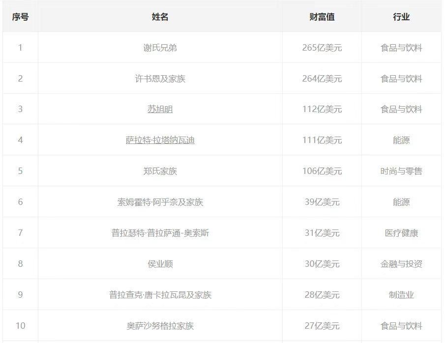 2022年福布斯泰国富豪榜上,苏旭明以112亿美元财富位列第3位,仅次于正大集团谢氏兄弟和红牛集团许书恩家族。