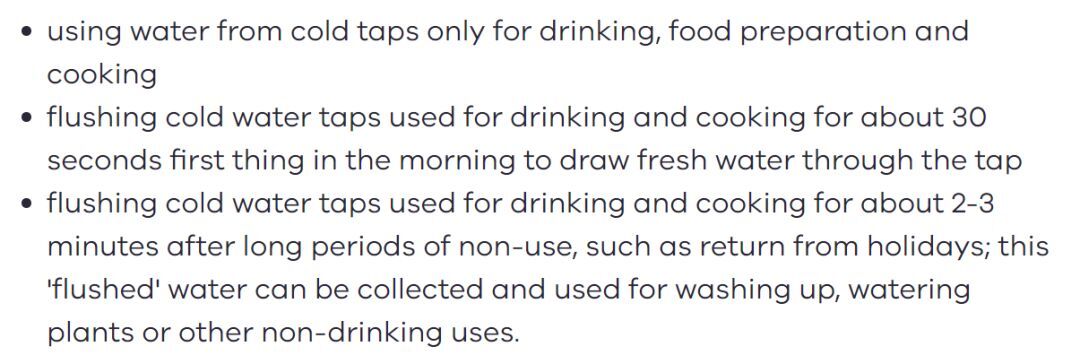 长时间不使用(例如出门度假回来),可以将水龙头调至冷水防水约2-3分钟,另外这些水也不要浪费,可以收集起来用于清洗或浇花噢。