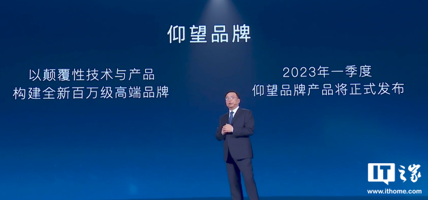 IT之家 11 月 16 日消息,今日,在比亚迪第 300 万辆新能源汽车下线发布活动上,比亚迪股份有限公司董事长兼总裁王传福表示,比亚迪将以颠覆性技术与产品构建全新百万级高端品牌 —— 仰望,将于 2023 年一季度正式发布亮相首款车型。