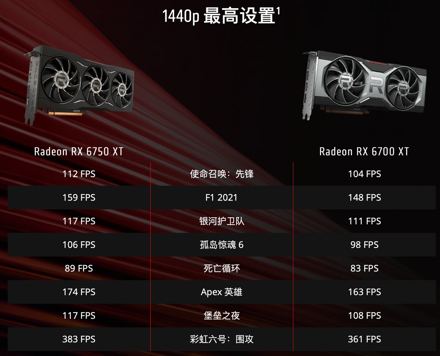 以下是 AMD 官方公布的 RX 6750 XT 与 RX 6700 XT 的 2K 游戏测试对比。