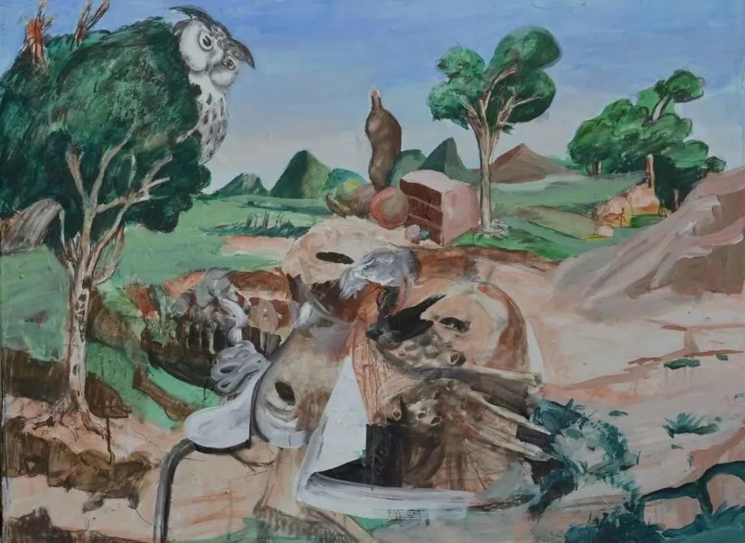 ▲ 陈飞,故国的秋,木板上布面丙烯,120 x 100 cm,2018-2022年 ©️艺术家与贝浩登