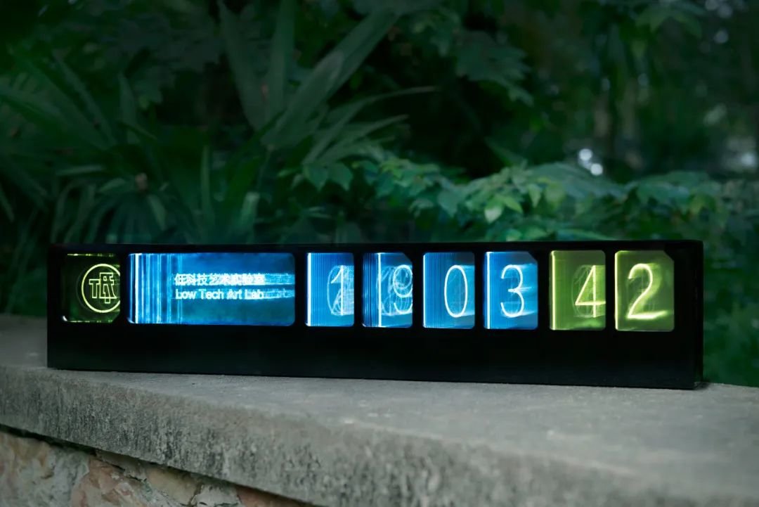 ▲ 郑达,《时间的形态 Ⅰ》,定制亚克力、LED灯带、电子综合材料,72×14×8.6cm,2018 ©️美术文献艺术中心