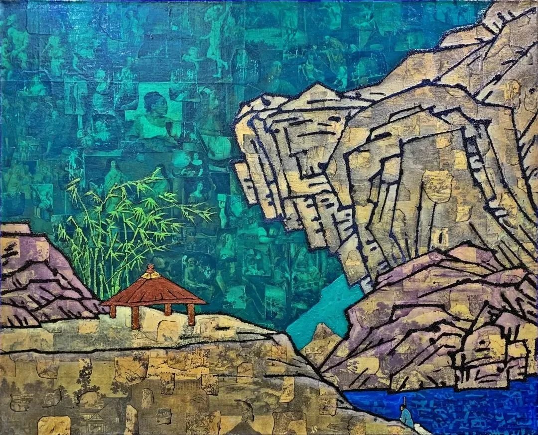 ▲ 薛松,湖岸竹亭,布面油画,80 x 100 cm,2015年