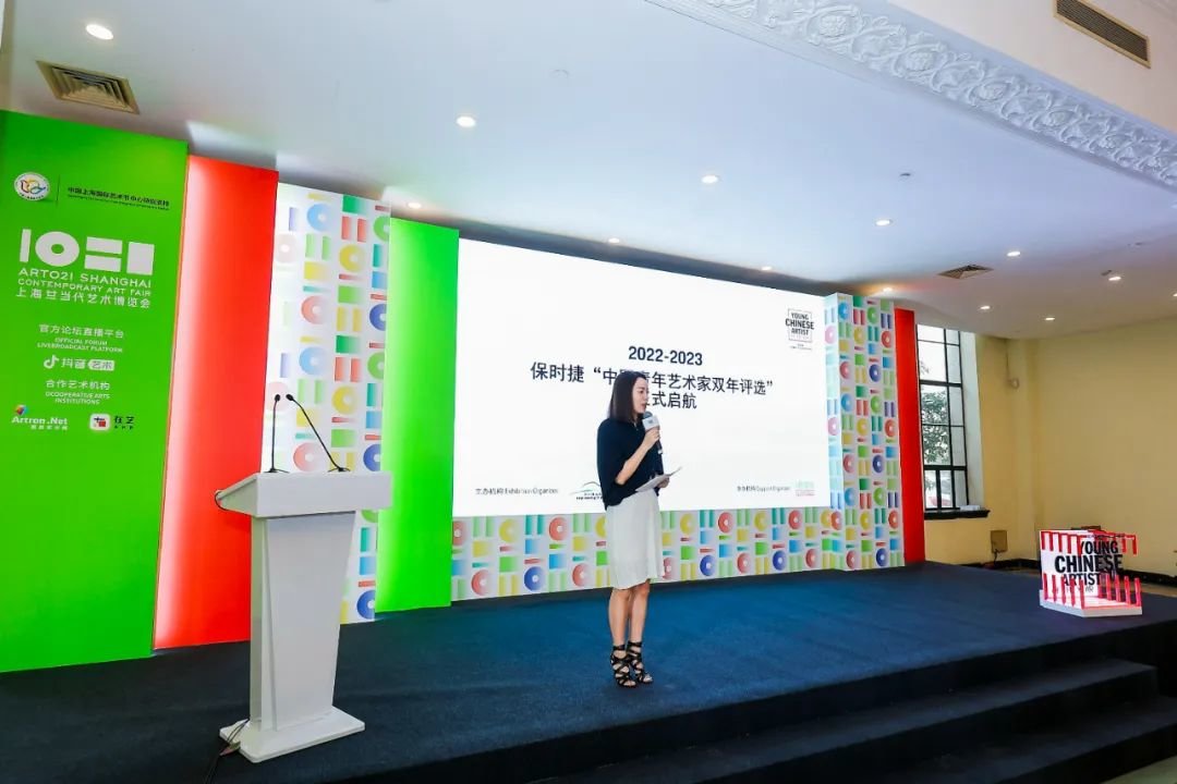 ▲ 2022-2023 保时捷“中国青年艺术家双年评选”正式启动,保时捷中国传媒公关副总裁唐凤靓致辞