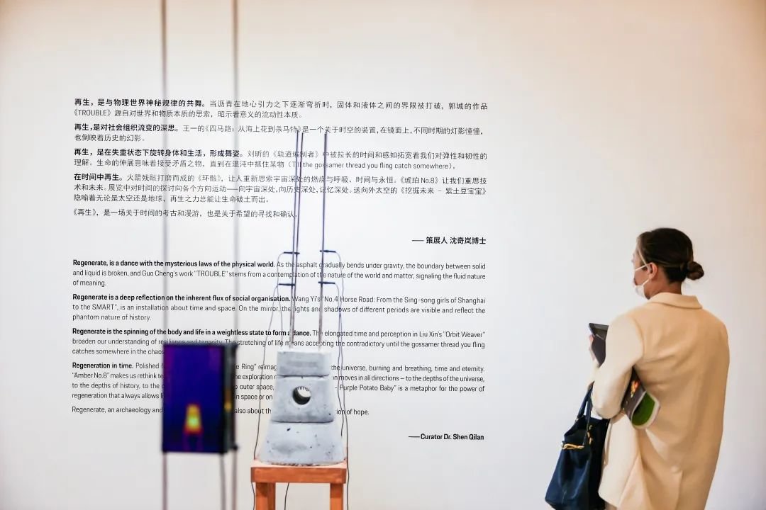 ▲ 2020-2021 保时捷“中国青年艺术家双年评选”获奖者作品展《再生》正式开幕,策展人、文化学者沈奇岚博士导览