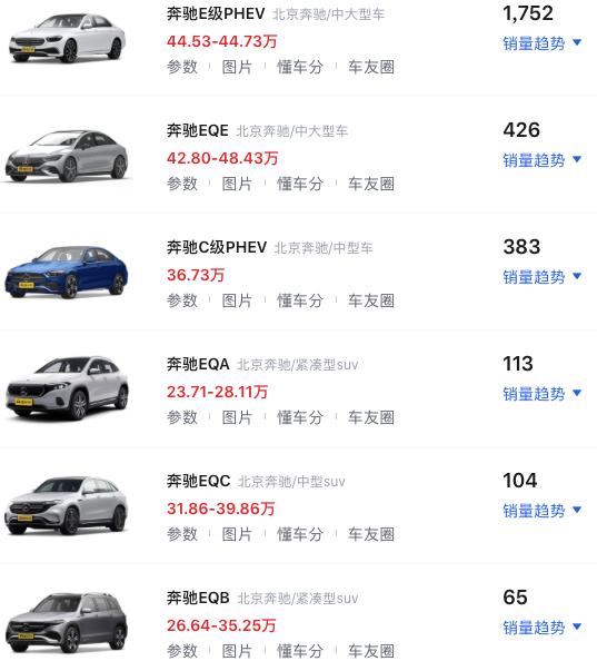 虽然奔驰在电动车领域推出了多款纯电动车产品,但车型销量惨淡。数据显示,2022年三季度奔驰在华销量同比增长37%至21万辆,细分车型上,EQC、EQB、EQA销量分别为3057辆、3918辆、3271辆,月均销量均只有300-400辆,而EQE作为奔驰首款基于纯电平台打造的产品,自上市以来累计销量也仅有1111辆。