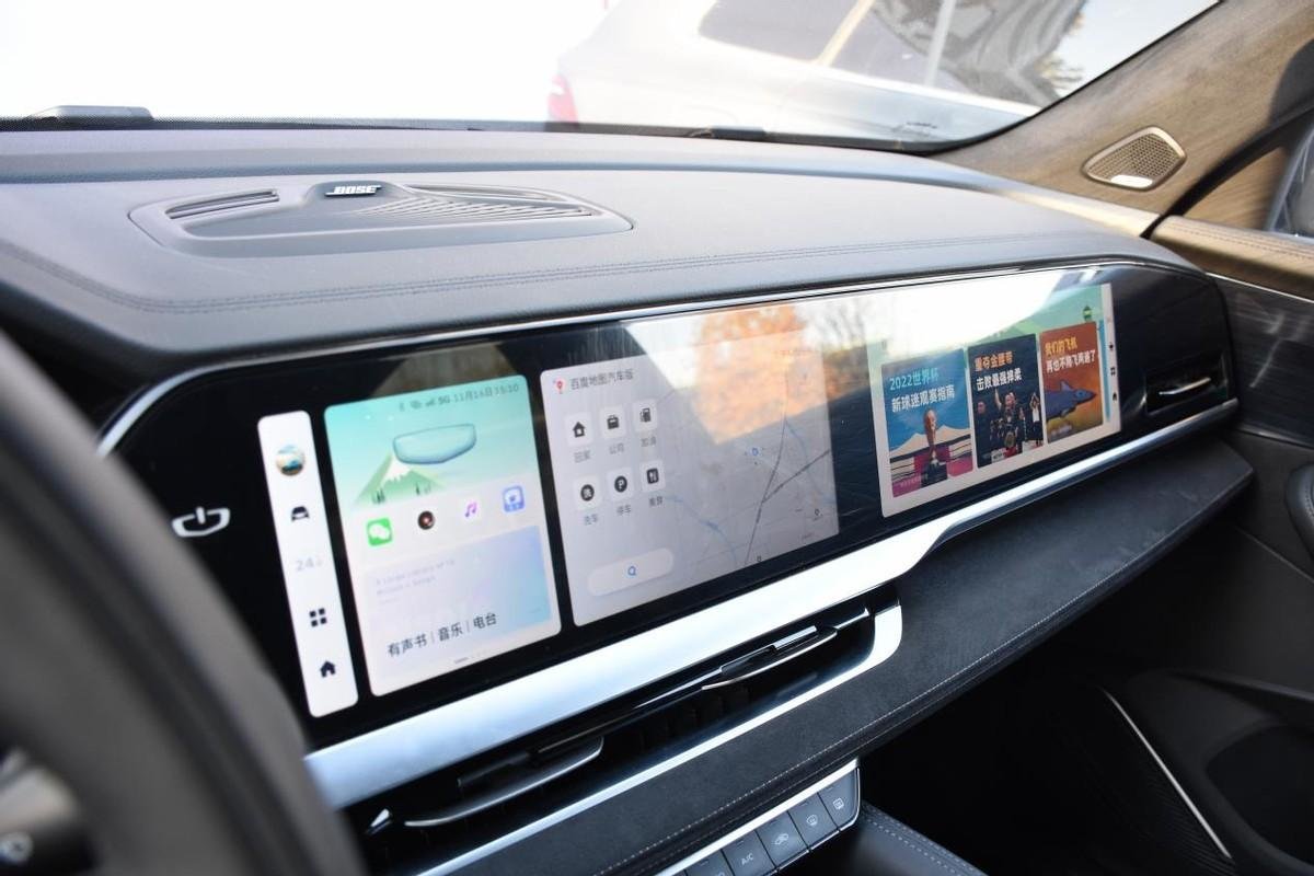 内饰则沿用了IMAX三联屏的设计,带来较强的科技感,搭载吉利银河OS系统,采用高通8155芯片。功能方面,现在社交软件中用的最多的微信、含多种小程序的腾讯随行、爱趣听APP、火山车娱APP等应用也都内置在车机系统中。此外还支持整车在智能安全域、信息娱乐域、动力底盘域、车身控制域等方面全功能域的FOTA升级。