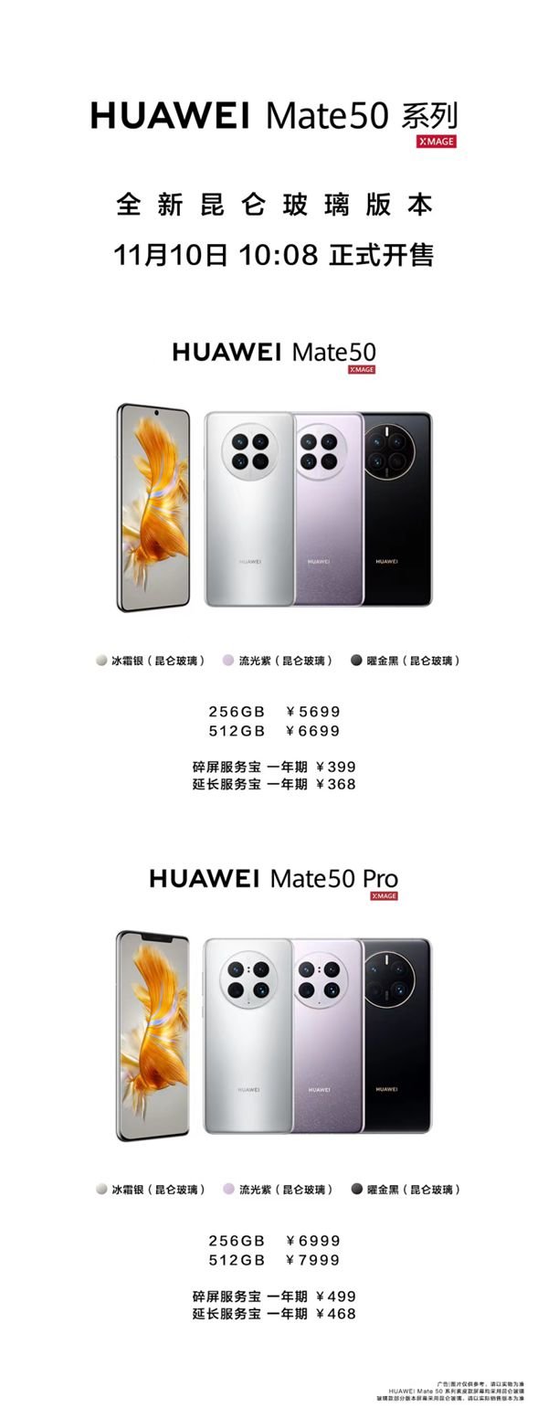 三款新版本已于11月10日10:08正式开售,至此,华为Mate50系列将全系支持昆仑玻璃,之前没买到昆仑玻璃版本的用户可以关注一下。