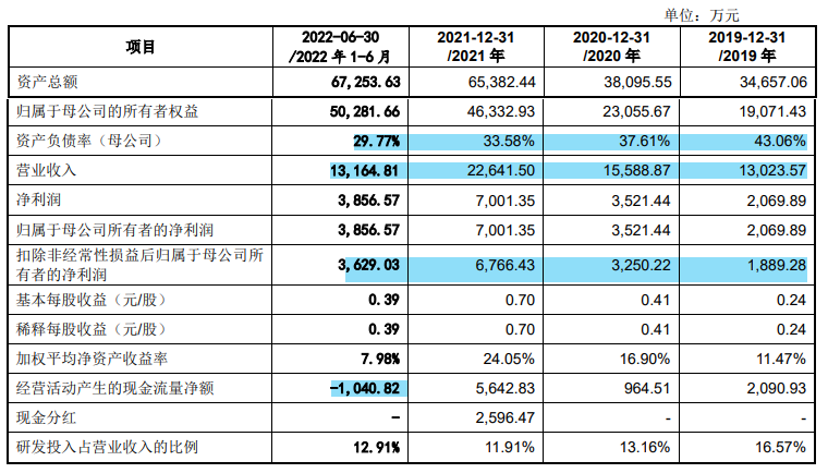 报告期各期,高华科技主营业务收入金额分别为1.286亿元、1.529亿元、2.237亿元和1.277亿元,2022年1-6月营业收入同比增长24.93%,低于2021年收入增速。