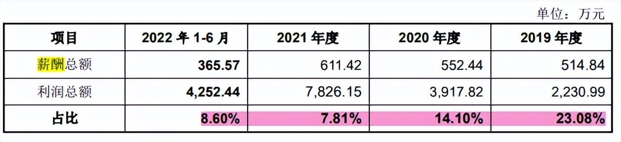 报告期内,公司董事、监事、高级管理人员及核心技术人员薪酬总额占当年公司合并报表利润总额的比重一路走低,主要原因在于利润总额的增长。