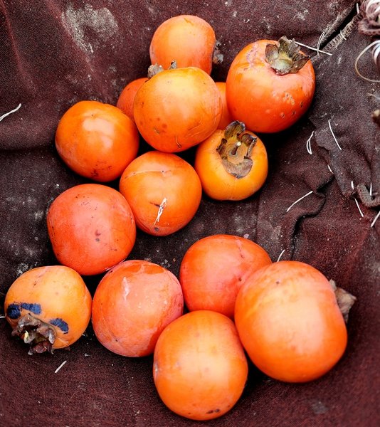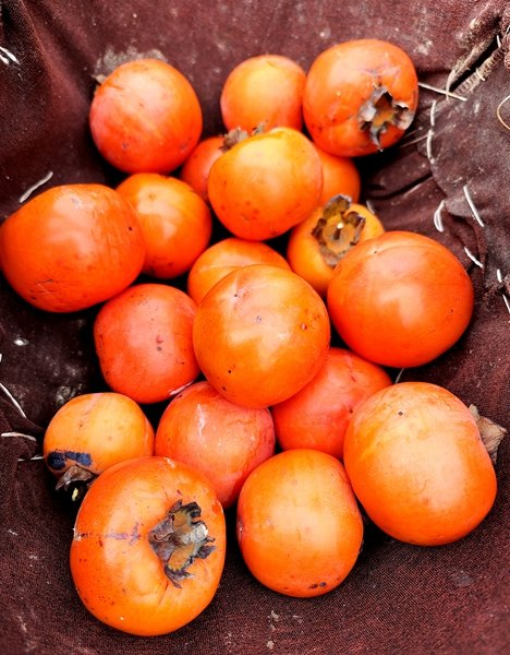 火红的柿子那么的自然,盈实,透着一种喜气!柿子熟流丹,柿子树坚韧,朴素!它们经过整个冬季的漫长等待,春天的精心孕育,夏天的风雨洗涤,秋霜的打击,才把柿子一身的苦涩化成香甜的果实!