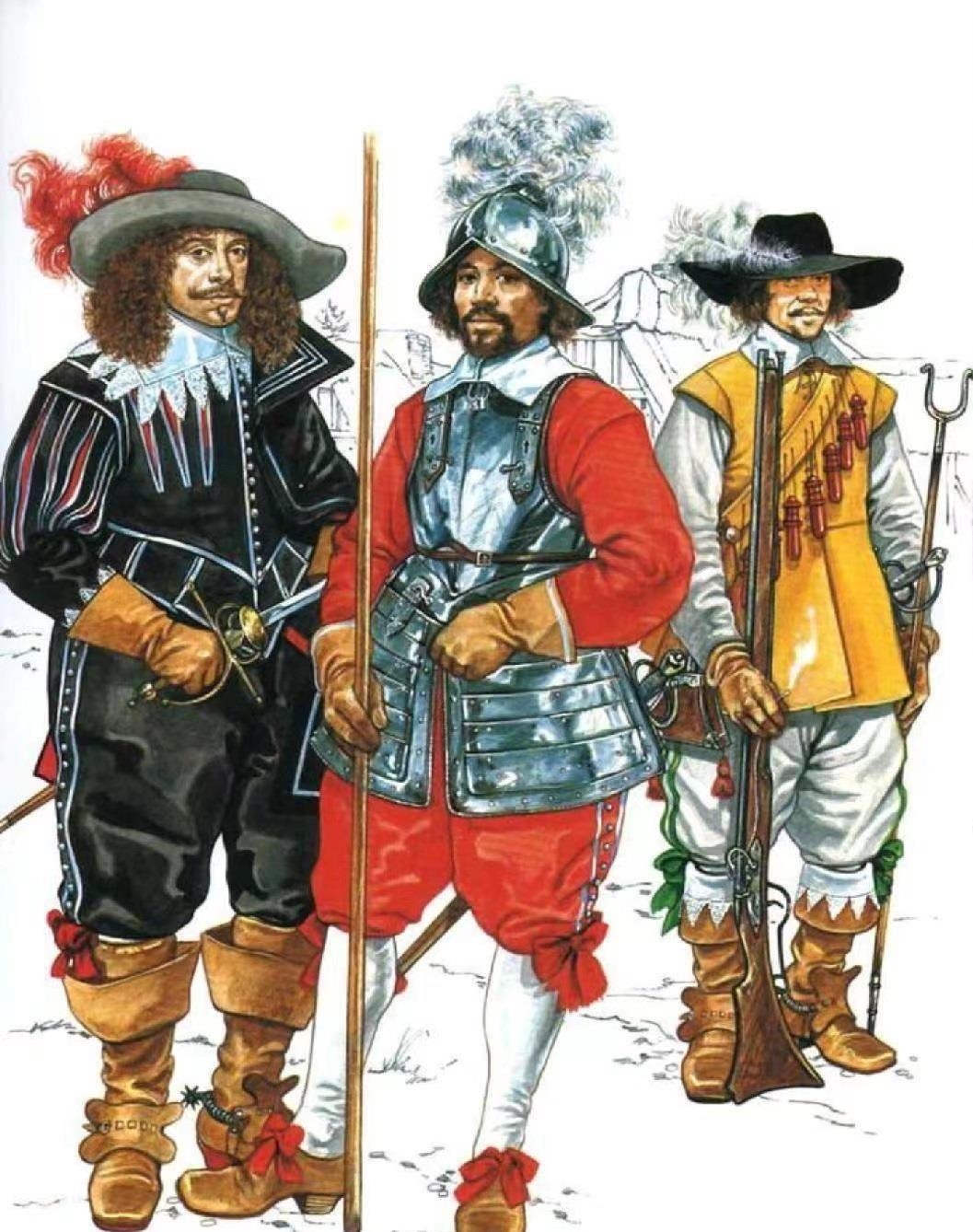 ▲17世纪中晚期典型荷兰军队的装束,此时还是冷热兵器混杂