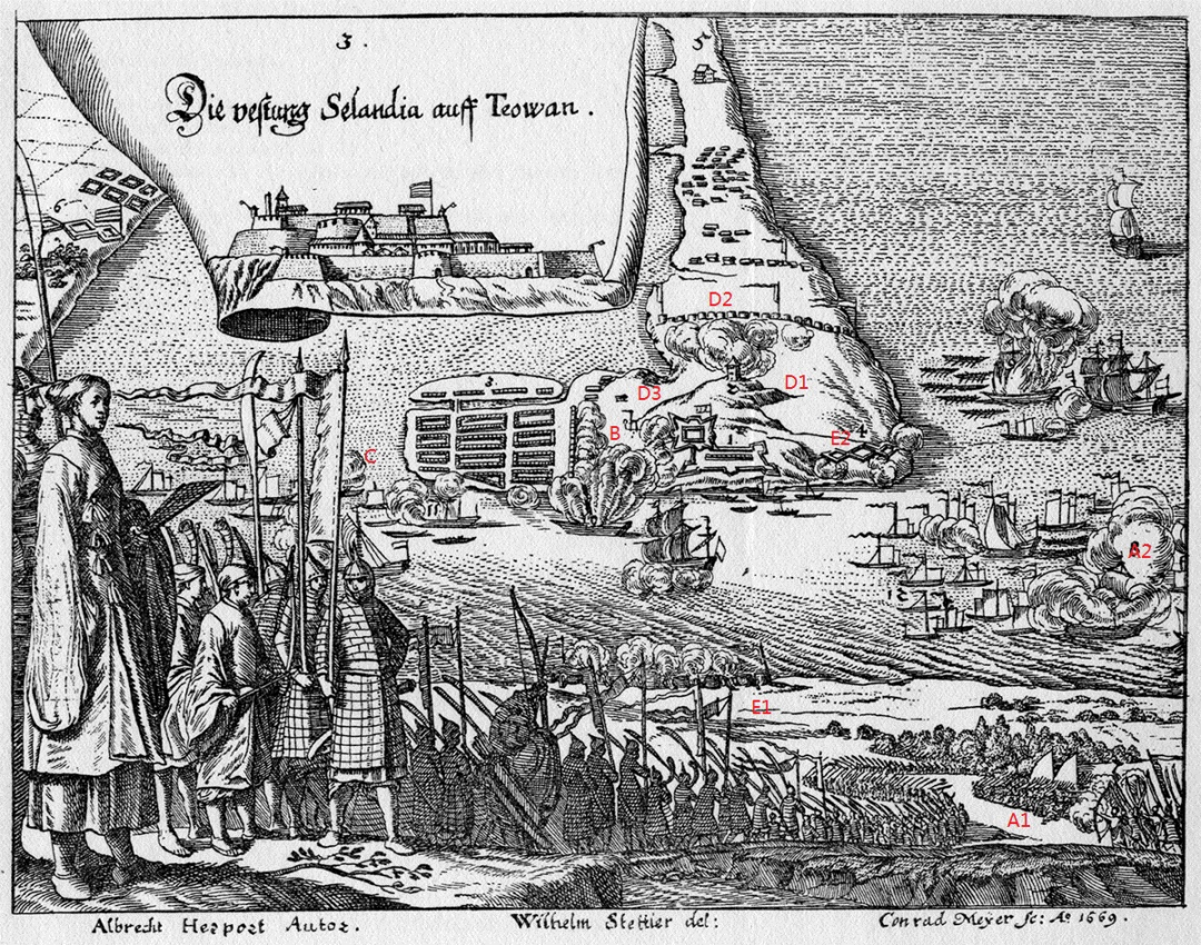 9月底郑军在热兰遮堡南侧射程外,构筑了一座炮台,这个位置主城攻击不到,碉堡中仅有3门炮能够攻击到郑军炮台,郑军却有3门以上的火炮能轰击荷兰人。因此荷兰人火力落了下风,关键是郑军射击也非常准确,揆一的秘书就记录到:“敌军非常善于瞄准,我们的士兵都不敢探出身子”。