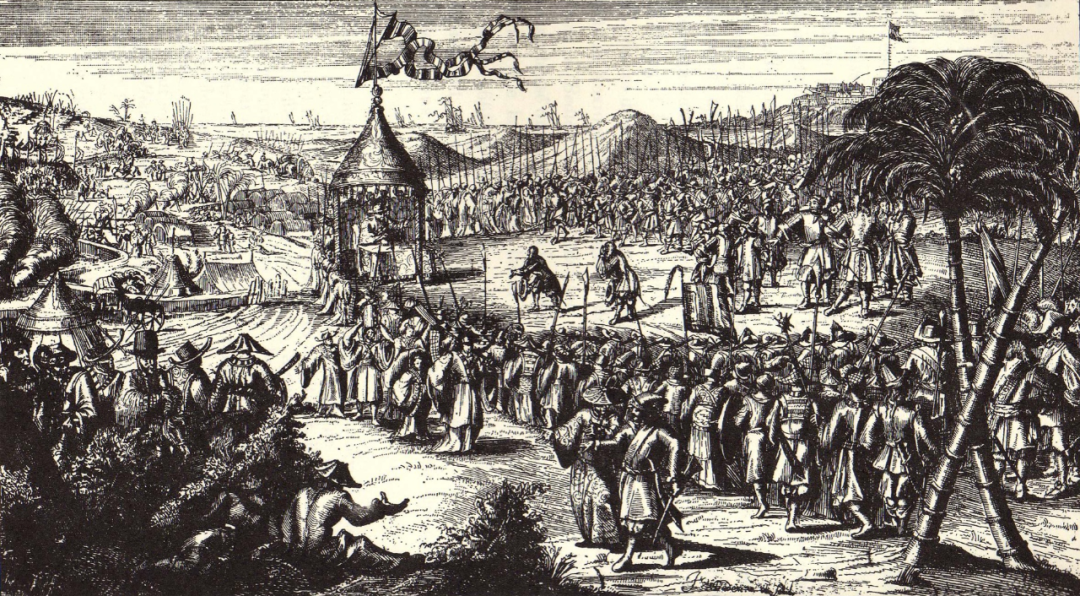 ▲1669年出版的一本关于东印度游记的插图,此图将战争中郑荷双方的主要战斗,全部浓缩到了一起