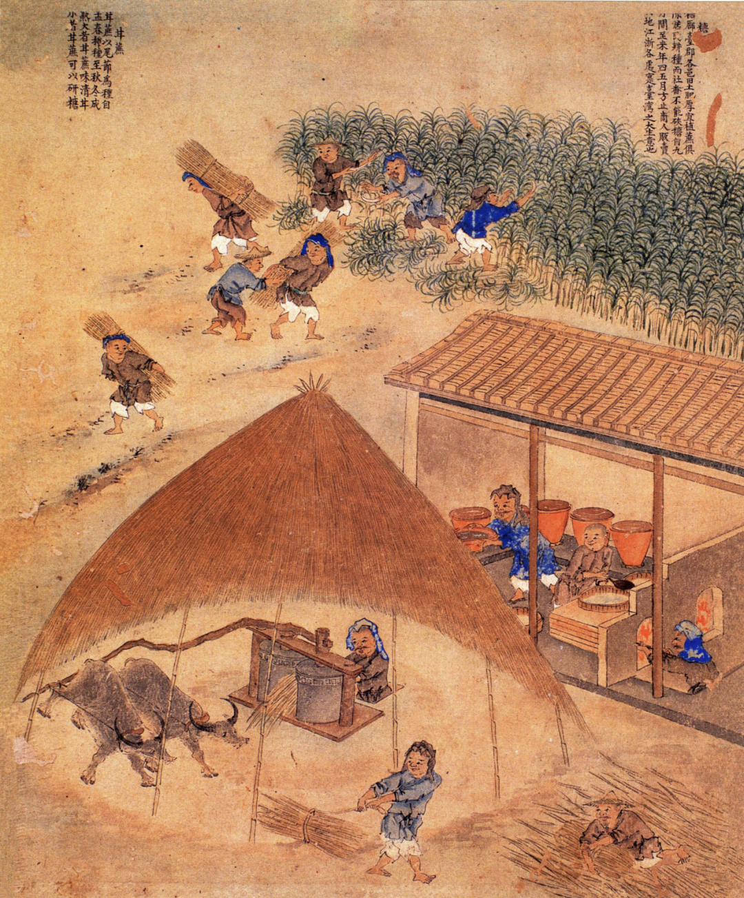 ▲清代描绘台湾种植甘蔗,制取砂糖的情景