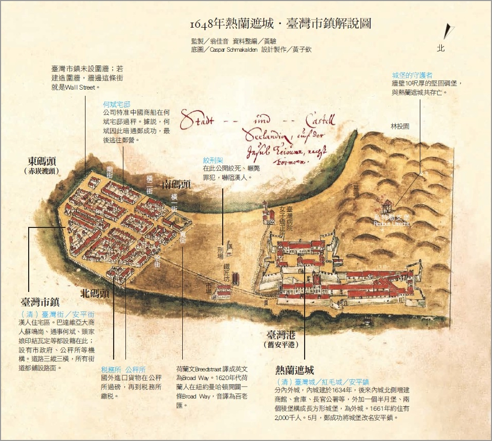▲1648年时的热兰遮城堡,1660年备战期间,又在外城的东北角加筑一个棱堡。