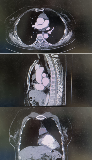 杨锋主任详细了解了患者病史并认真查看其胸部ct,考虑为胸腺瘤,告知王阿姨和家属,这类肿瘤一经诊断即应手术切除,并耐心地讲解了病情利害。随后王阿姨办理住院,完善各项检查为手术做好充分准备。
