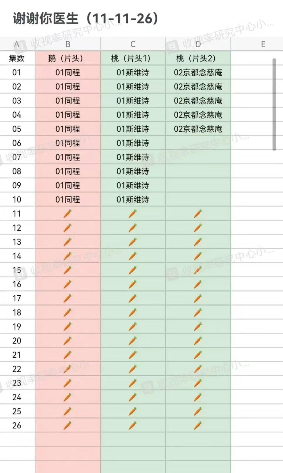还有个数据值得注意。《谢谢你医生》爱奇艺、腾讯视频播出期间,爱奇艺1-5集片头有两个广告,5-10集有1个广告,10集以后没有广告。腾讯视频前10集有1个广告,10集以后广告也消失了。同为杨幂主演的偶像剧《爱的二八定律》,前10集不仅片头有3个广告,播出10分钟更有中插广告出现。