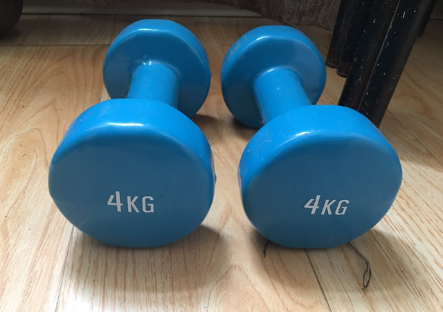 组装完毕后,就可以用哑铃进行各种锻炼了。