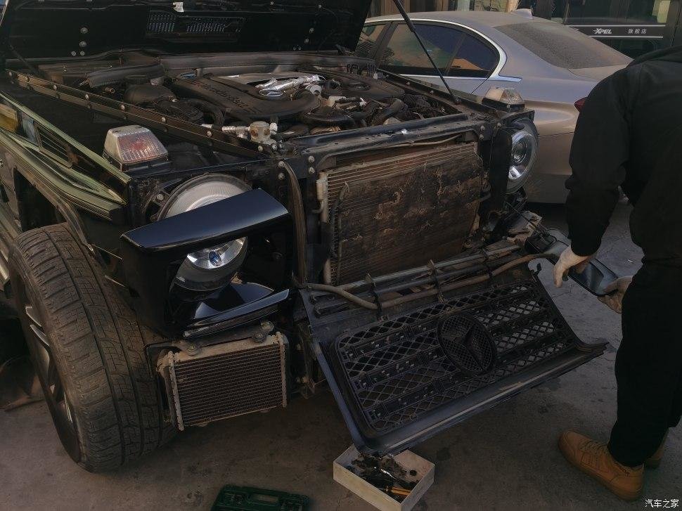 不知道车主看到会不会心疼,前面已经全部拆掉了,包括翼子板和机盖都要换新的。