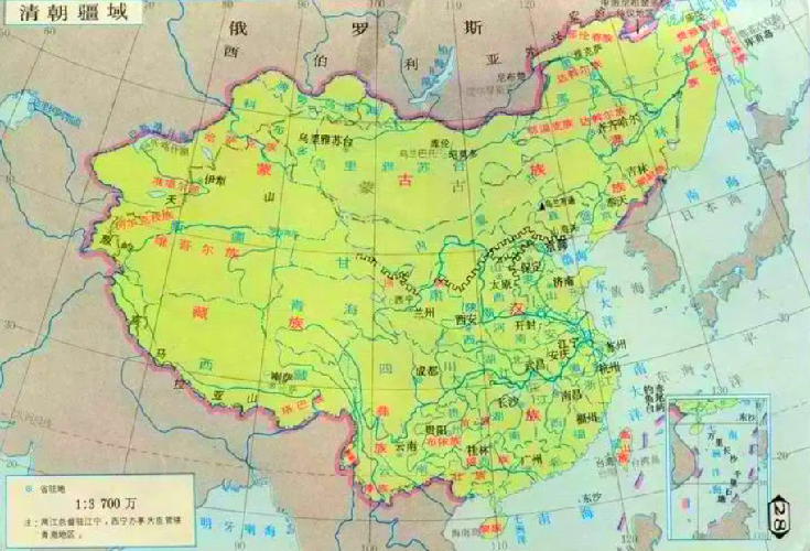 不过说到这里就不得不提一下清朝。清朝鼎盛时期领土为1300多万,到了清朝灭亡的时候,仍然剩下1100万。在这个过程中,左宗棠的收复新疆,赵尔丰的收复西藏,李鸿章的保卫沿海,都起到了关键性的作用。