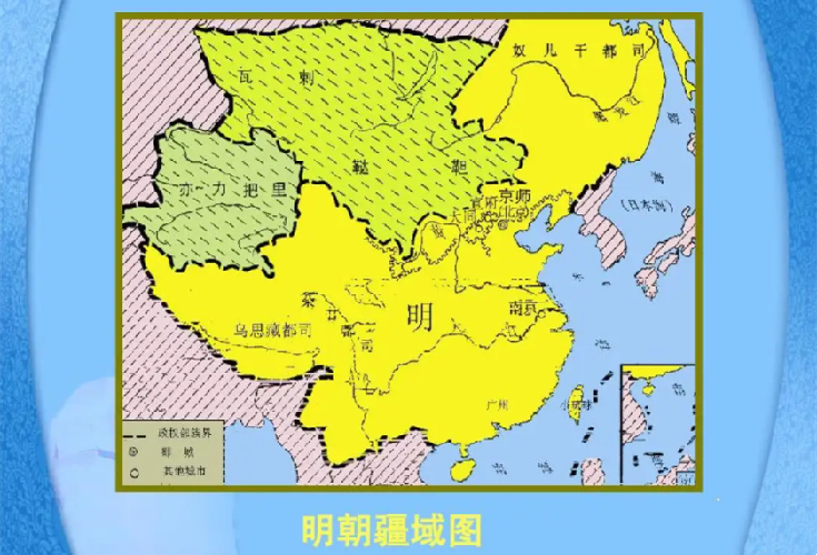 前面说过,一个朝代领土面积的大小,一般按照鼎盛时期的领土来计算,所以明朝的版图应该是997万。