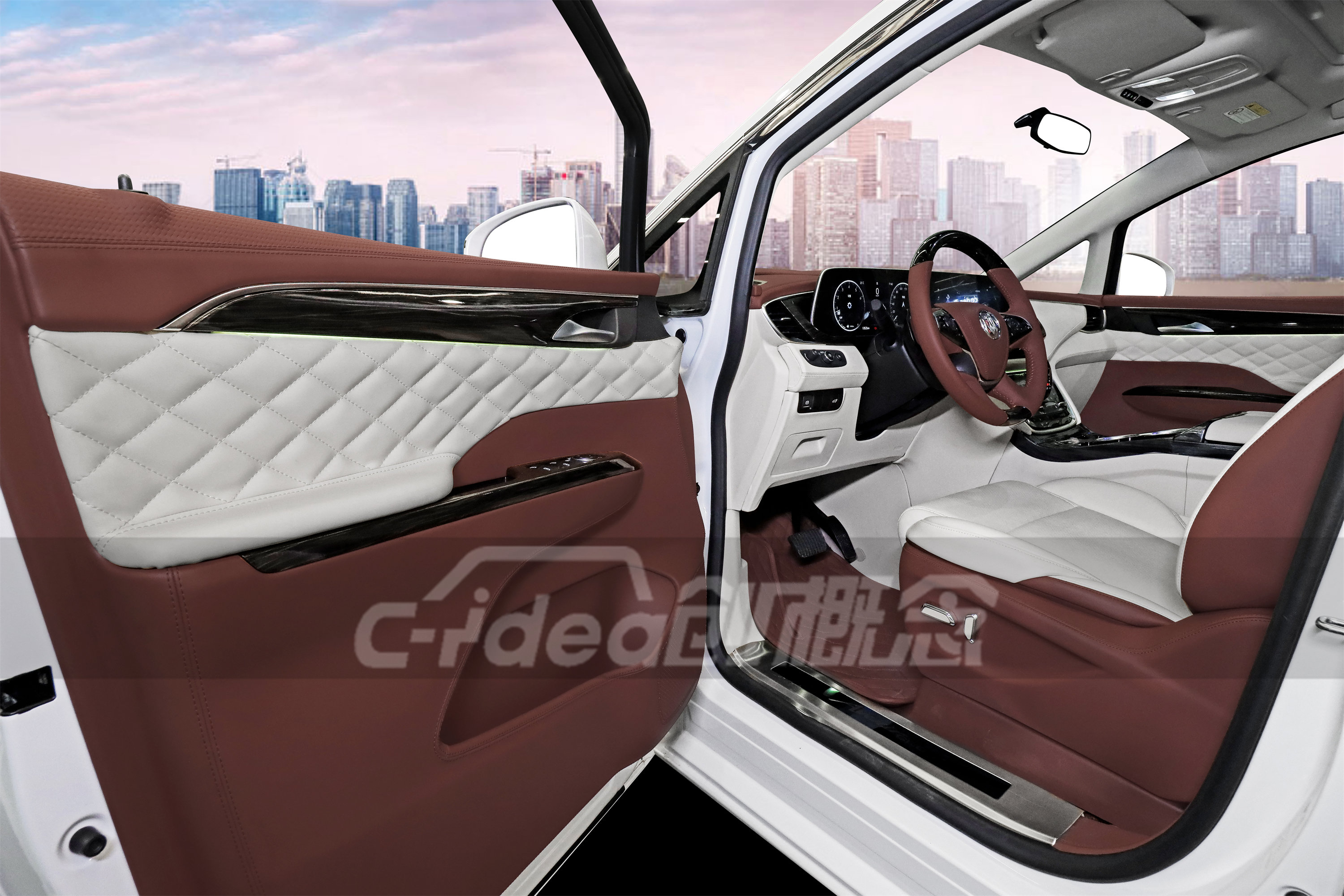 顶棚定制蝴蝶造型顶灯搭配七彩氛围灯, 很好的提升乘客舱车内的氛围感 ,让舱内更加的温馨奢华。